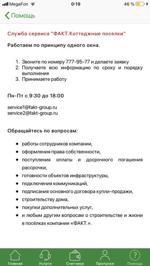 Мы постоянно дополняем и улучшаем приложение. Если вы столкнулись с проблемой в его использовании или у вас появилась интересная идея по дополнению информацией или функциями, пишите нам на mobile@fakt-group.ru