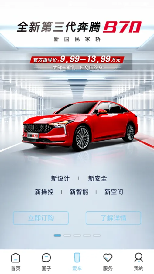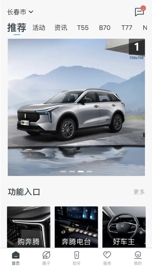 您可以查看新车商城、预约试驾、以及奔腾汽车相关活动促销信息。
