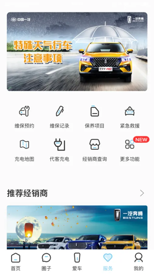 提供全方位用车服务,在线完成维保预约、经销商查询、维保记录查询、备件查询等。
