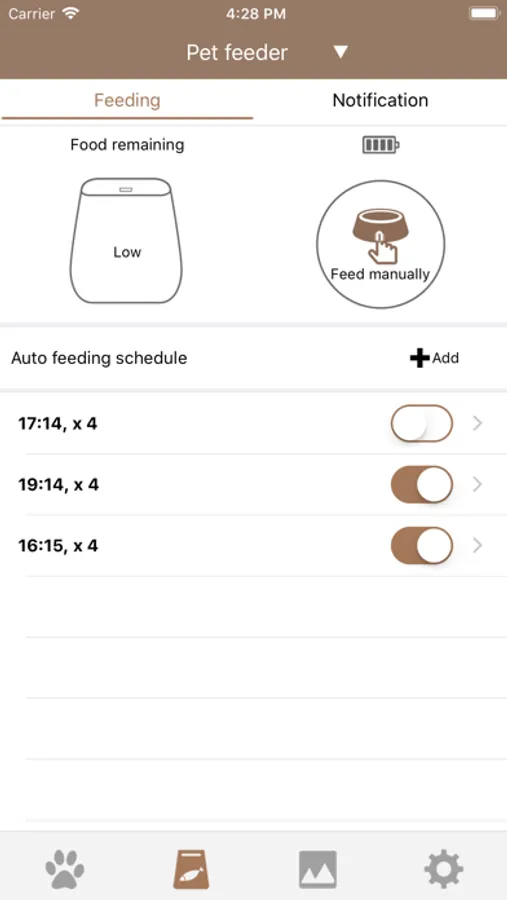 Pet Partner is a helpful addition to your feeding system. It is perfect for small animals like puppies and kittens that require small feeds at regular times. It allows you to feed your pets remotely with precise amount of food. It could also feed your pets automatically by set feeding dule.
