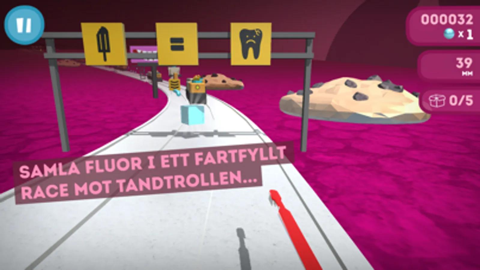Rör dig framåt på banan genom att hoppa över eller glida under sockerfällor och andra hinder. Tandpengarna du fångar in längs vägen används för att låsa upp nya funktioner och för att välja utseendet på ditt band. Ju mer du spelar desto mer grejer får du tillgång till!