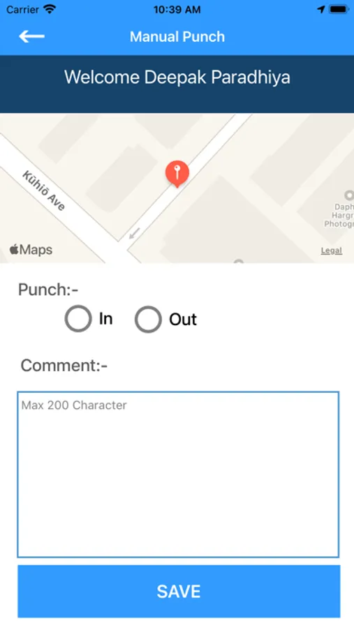 This application is used for punching IN & OUT time for Attendance using mobile handset.