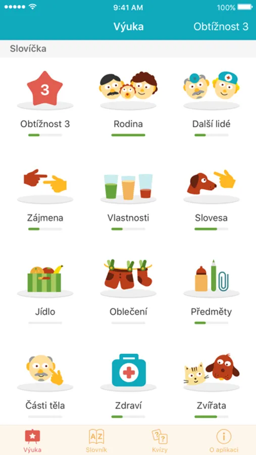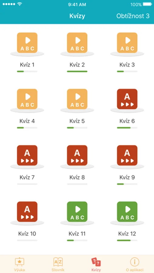 2. Výuka členěná do tématických lekcí s různými stupni obtížnosti