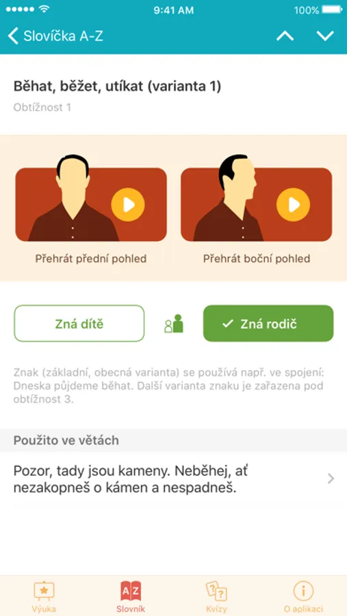 Aplikace v sobě obsahuje všechna videa, takže při jejím používání nemusíte být připojeni k internetu. Můžete se tak bez omezení učit znakový jazyk kdykoli na to budete mít čas a chuť.