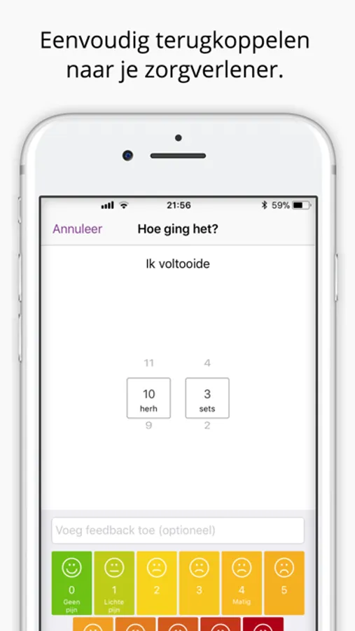 Met deze interactieve oefenapp ga je met ondersteuning van een (arbeids-)fysiotherapeut aan de slag met de aanpak van jouw, al dan niet arbeidsrelevante, houdings- en bewegingsapparaat klachten en jouw fysieke welbevinden en/of duurzame inzetbaarheid.
