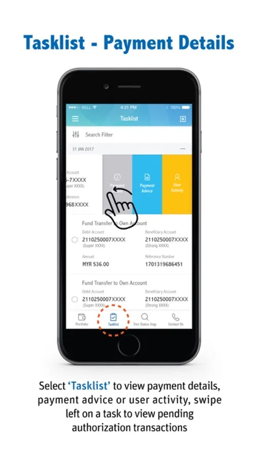 • Search and view all pending payment authorizations based on transaction type under 'Tasklist’.