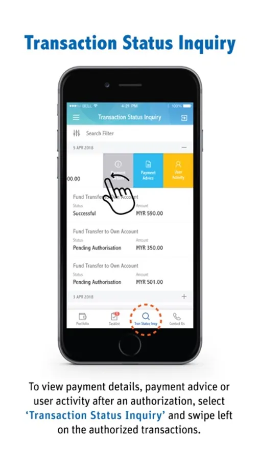 • View all status of transactions with details, payment advices, and transaction activities under ‘Transaction Status Inquiry’.