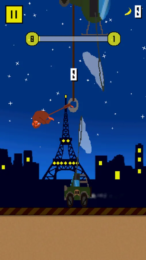 Test your abilities with this funny pixel art game. Use your quick reflexes and fast decisions to rise through the ranks. Collect bananas and unlock special monkeys, share your success with your friends and have a fun!
