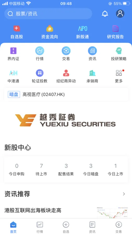 越秀証券有限公司之越秀交易寶,是越秀証券-通天下閃電交易手機版的全新升級版,為用戶提供更加方便和全面的資料及資訊服務,讓投資者不管身在何處都可以輕鬆查看股市資訊及進行交易,緊握香港證券市場脈搏。