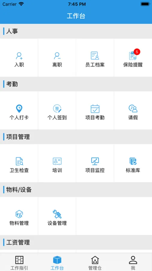 此外,还涉及到项目管理的各个方面。人事的快速入离职方面,支持身份证和银行卡的扫描,操作方便,人事信息第一时间同步至公司总部。入职时,无疾病声明杜绝风险隐患,保险购买提醒加强了用工保障。外勤管理方面,个人签到、会议签到、拜访甲方签到、培训签到,全方位还原外勤工作轨迹。物料管控方面,申请轻松快捷,审批流程自行设置。支持物料盘点、调拨、报废等。物料管控与预算相结合,让物料的申请和使用更加合理与规范。设备方面,扫码二维码即可进行设备的维修与保养。智能工资计算方面,无手工零差错。培训方面,为打造可复制的人才提供了丰富的资源。OA等其他功能,将以往纸质化办公方式过渡到信息化办公。