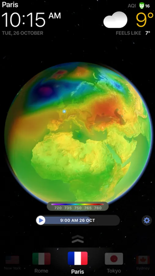 Enchanting 3D Earth images will attract your attention in that app and you can forget what the main feature of that app is a weather forecast.