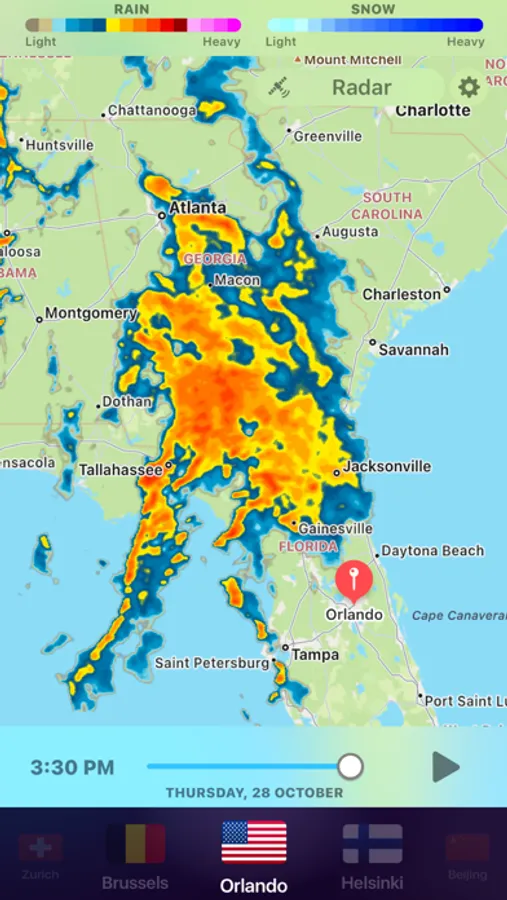 - Location to provide you with the weather forecast and alerts for your exact location as you move or travel;