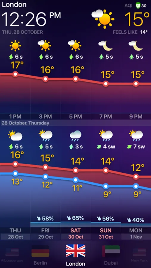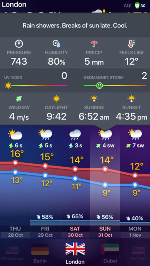 ● High quality animated clouds, wind, temperature, pressure maps with the hourly forecast.