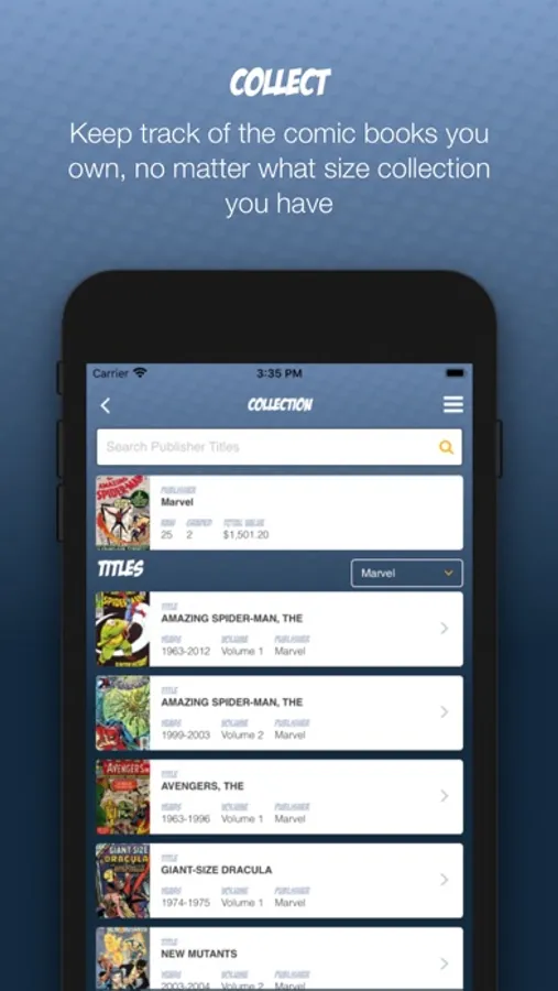 Search from close to 6000 publishers from dozens of countries. All of them at your literal fingertips, Marvel, DC, Image, Panini, IDW and the list goes on.