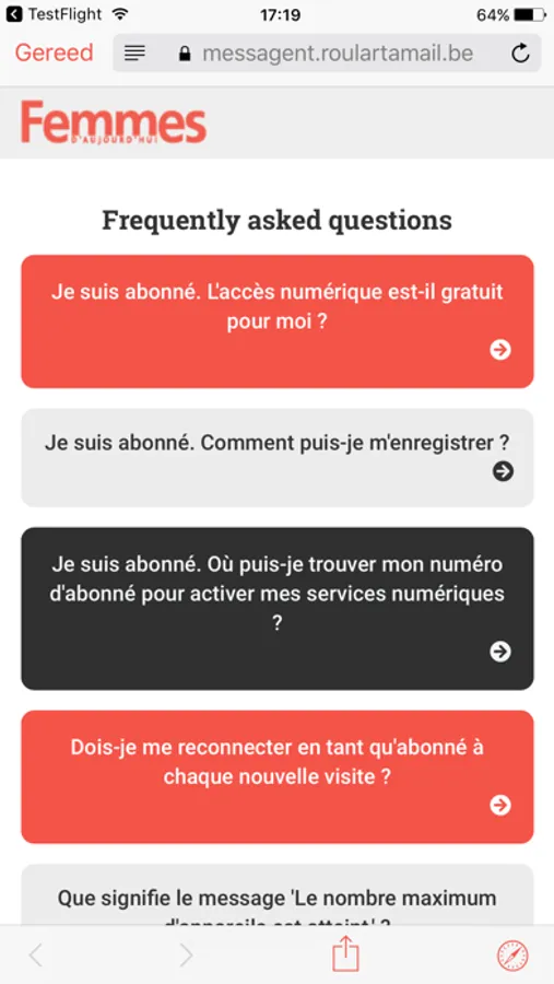 Les abonnés de Femmes d’Aujourd’hui ont un accès gratuit aux numéros de Femmes d’Aujourd’hui sur leur iPad et iPhone. Connectez-vous avec votre compte femmesdaujourdhui.be ou enregistrez-vous dans l’application.