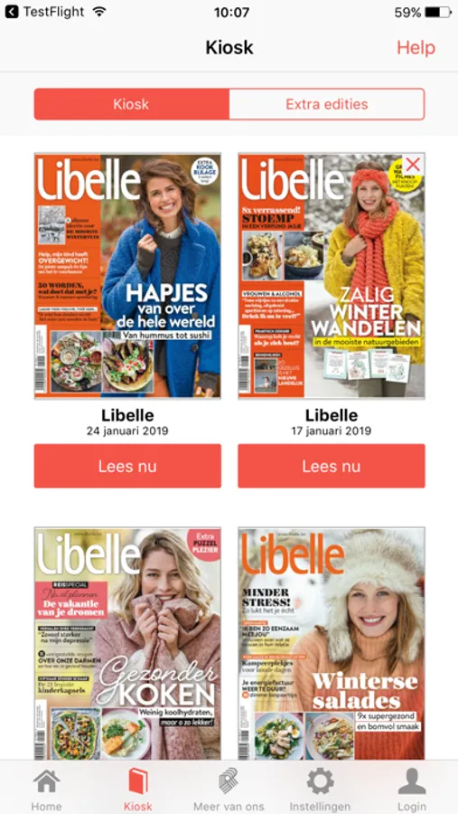Libelle abonnees krijgen in de app, zonder extra kosten, toegang tot hun magazines. Log in met de gegevens van je account op Libelle.be, of maak in de App zelf een account aan.