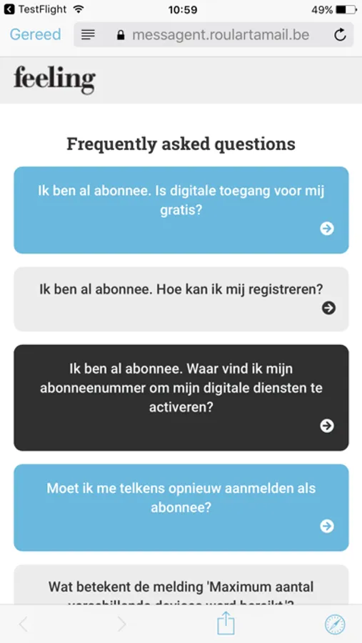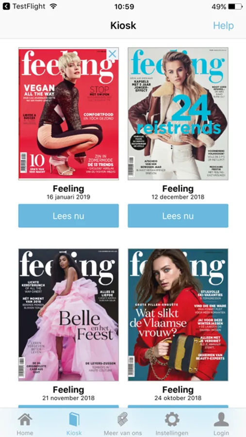 Feeling abonnees krijgen in de app, zonder extra kosten, toegang tot hun magazines. Log in met de gegevens van je account op Feeling.be, of maak in de App zelf een account aan.