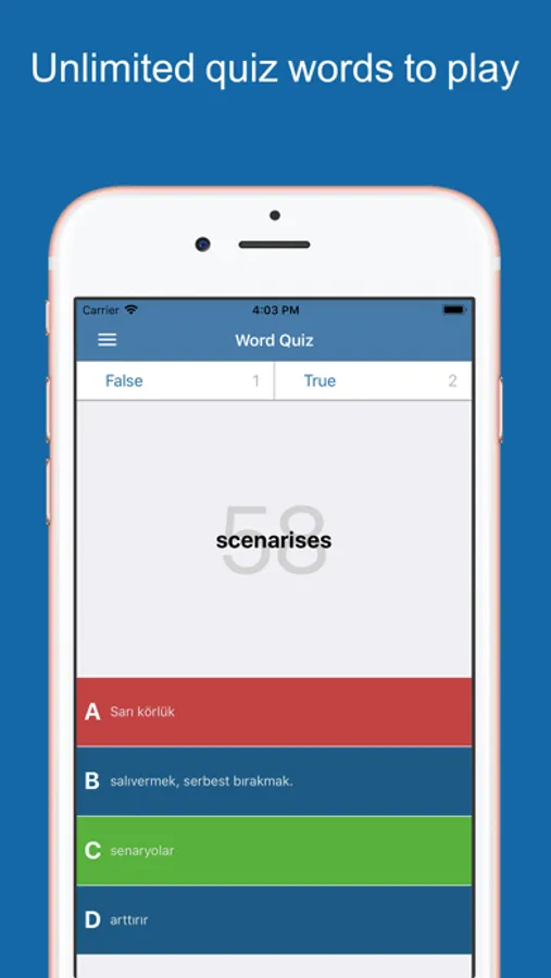 - We developed a new quiz inside Turkish dictionary! To take the quiz, you can easily tap the option icon in the top left side of the screen and choose quiz. Now, you will see a word in the screen with 4 answers, you will have to tap the answer that you think its right to see if it’s the good choice or not. Keep in mind, that there is a countdown timer and if it finishes without a reply from you, then the quiz will ends.