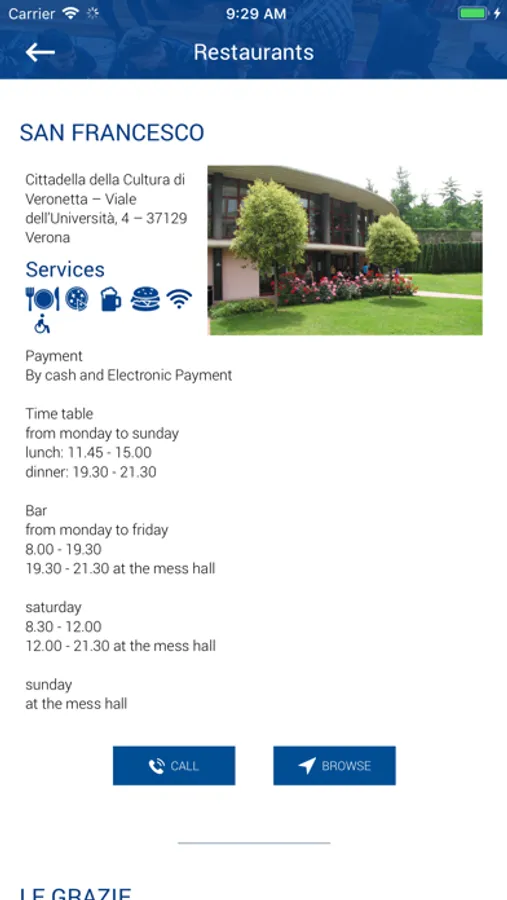 - visualize all Esu services: accommodations, restaurants and study rooms;