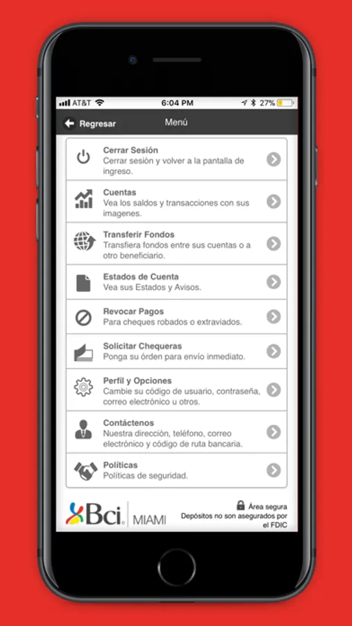 Por eso le entregamos la aplicación Bci Miami para que pueda hacer todas sus transacciones financieras en pocos clics, de forma segura y con una experiencia móvil de vanguardia. Con Bci Miami usted podrá: