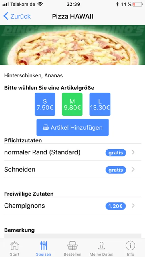 Mit der neuen App von Dino's Pizza Service in Norderstedt oder Elmshorn bestellen Sie bequem Ihre Lieblingspizza, Wraps, Aufläufe, Nudelgerichte, Salate und vieles mehr in nur wenigen Schritten, schnell und unkompliziert.