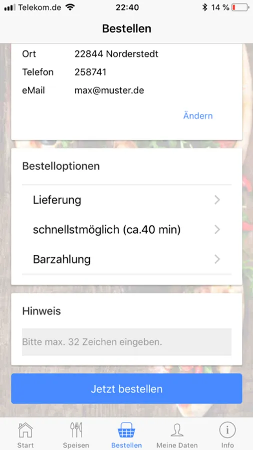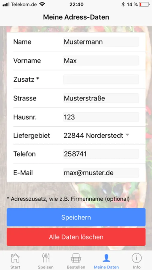 Wählen Sie zu Beginn Ihr Liefergebiet oder ob Sie in der Filiale selbst abholen möchten, dann müssen Sie nur noch die Speisen und eventuell Zutaten auswählen und am Ende Ihre Kontaktdaten und die gewünschte Zahlungsmethode eingeben, damit wir wissen, wohin wir liefern sollen.