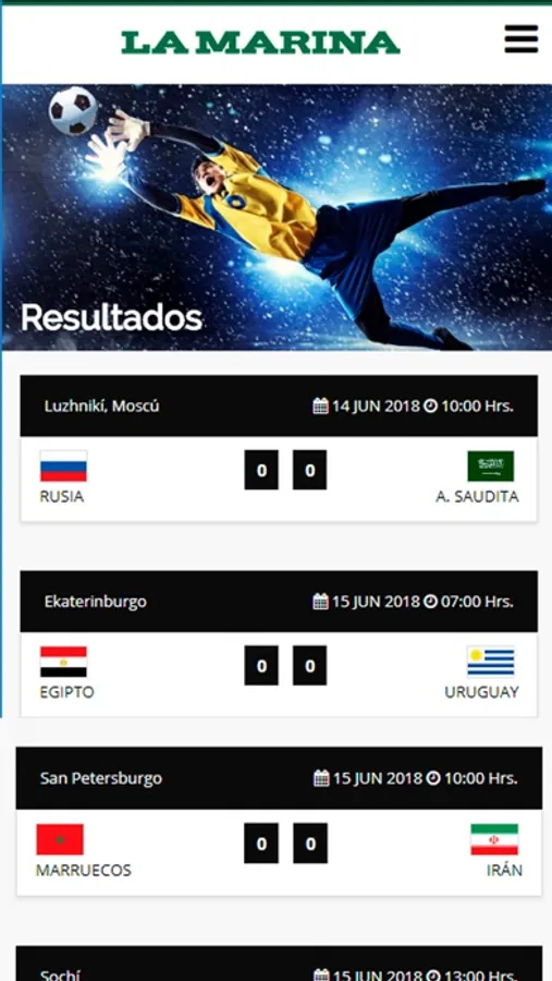 Vive la emoción del mundial de Rusia 2018 en tu celular con La Marinapp. Podrás recibir notificaciones de los partidos que más te interesan, conocer los horarios y los marcadores en tiempo real.