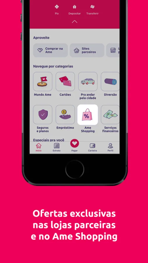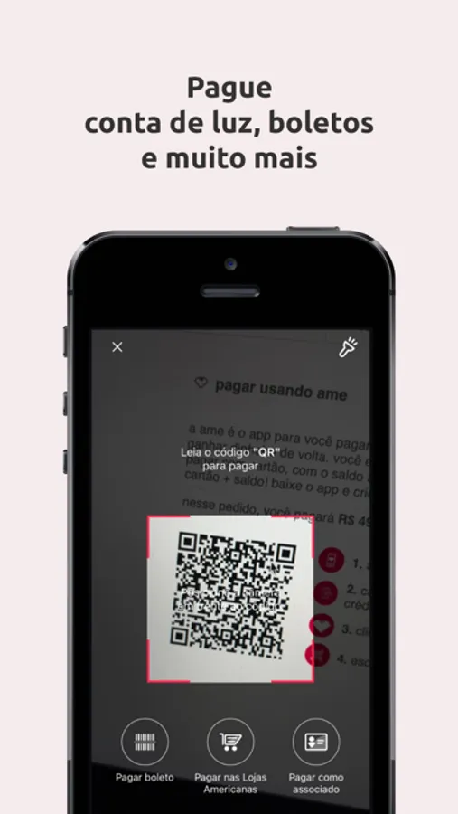Com Ame é muuito fácil. É só clicar em pagar e escanear o QR code. Além disso, você pode fazer transferências entre contas Ame e recarregar seu celular. É bem mais rápido e seguro!