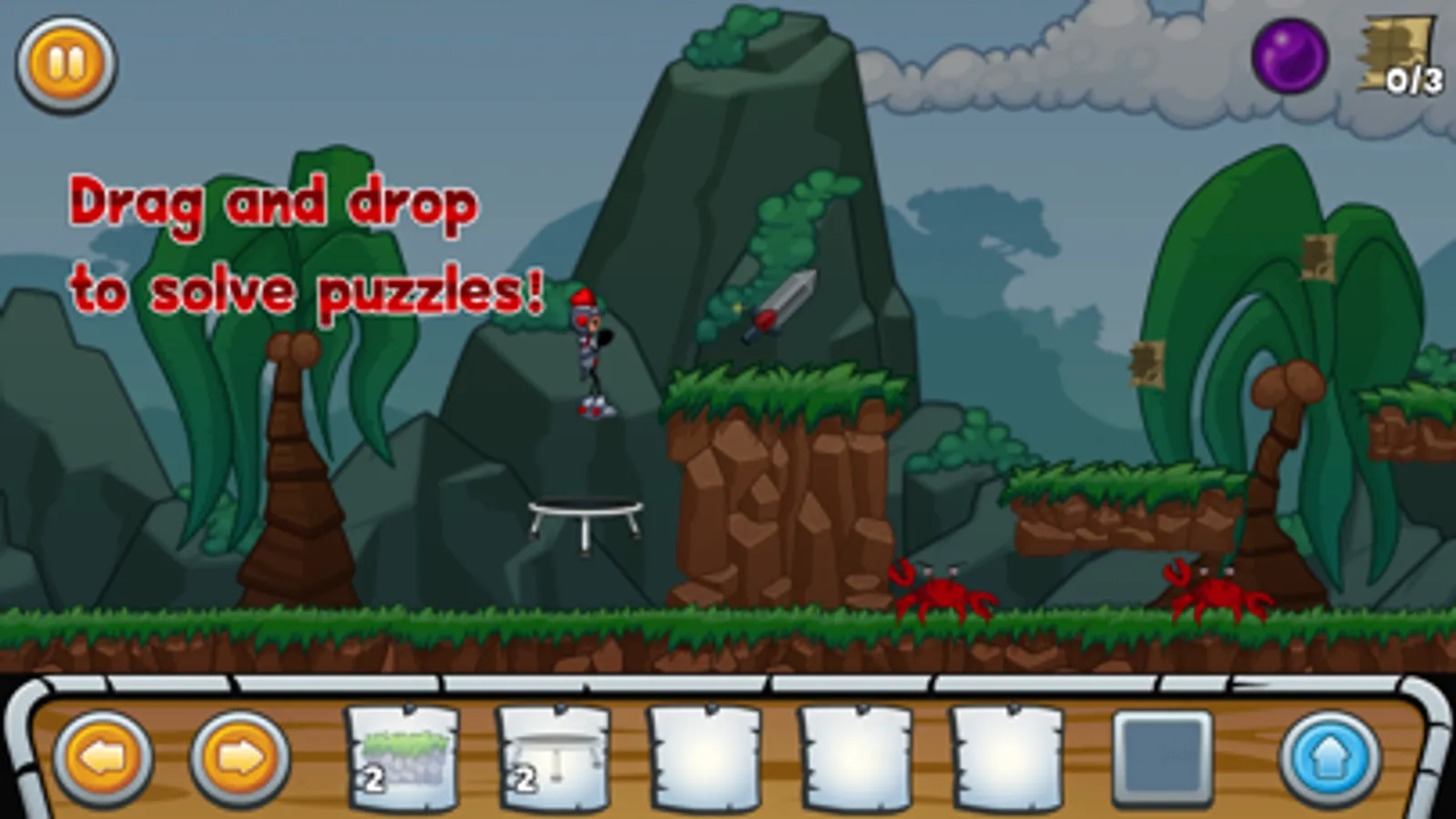 Stickland is in peril! Use your ability to drag and drop objects form your tool bar into the game world to help Linus on his quest to save Princess Linia and restore peace to Stickland. These objects will help you overcome various obstacles and include: platforms, trampolines, stones, dynamite, and candles.
