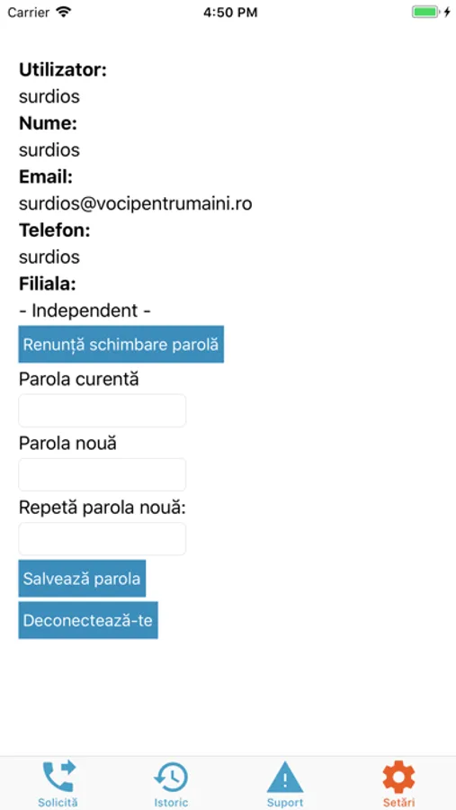 O persoană surdă accesează acest serviciu cu ajutorul unui cont. Acest cont va fi creat după completarea unei cereri la filiala locală a Asociației Naționale a Surzilor din România (ANSR).