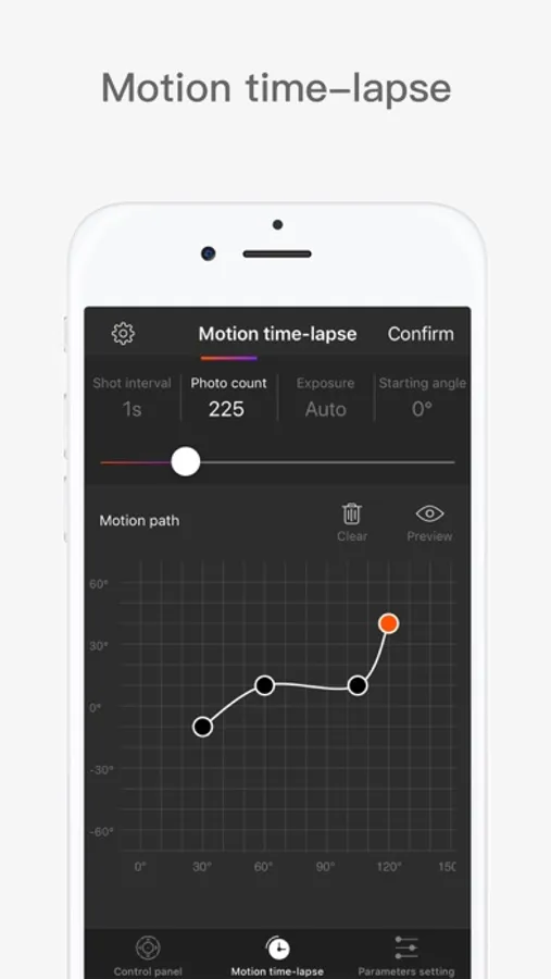 The main features include: remote control camera, Motion time-lapse shooting.