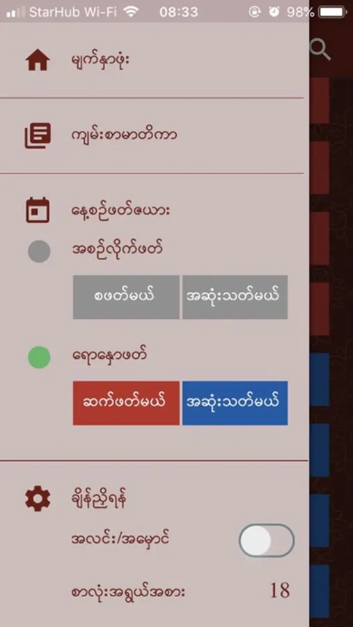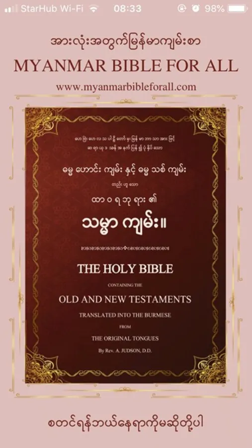This app is intended for those who want to read the Word of God in Myanmar on their mobile devices anytime anywhere. This version is translated into Burmese from the original tongues by Rev. Adoniram Judson and is the most loved and widely used by Myanmar Christians. The source data is linked and taken from www.myanmarbibleforall.com website. Spelling errors and inconsistencies have been carefully checked and corrected so that believers can read the Word of God in complete confidence that they are reading the same Myanmar Bible as in the printed version. Errors and mistakes in the source data are corrected as and when they are discovered and as such users are recommended to update this app regularly to get the most accurate version of Myanmar Bible.