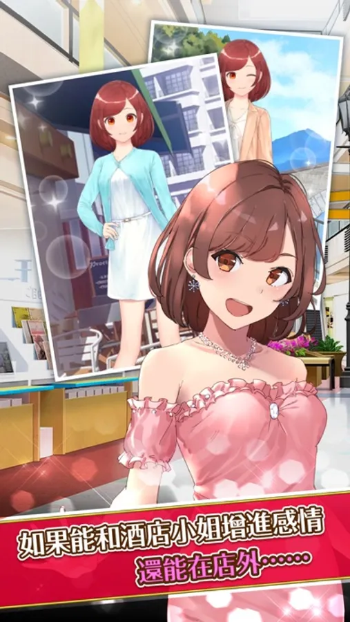 可以經營放置型育成公司來賺錢,並拿來貢獻給陪酒女郎吧。遊戲中也可以送洋裝給女孩子讓她們換裝。日本超人氣的模擬戀愛&經營類遊戲正式登場!