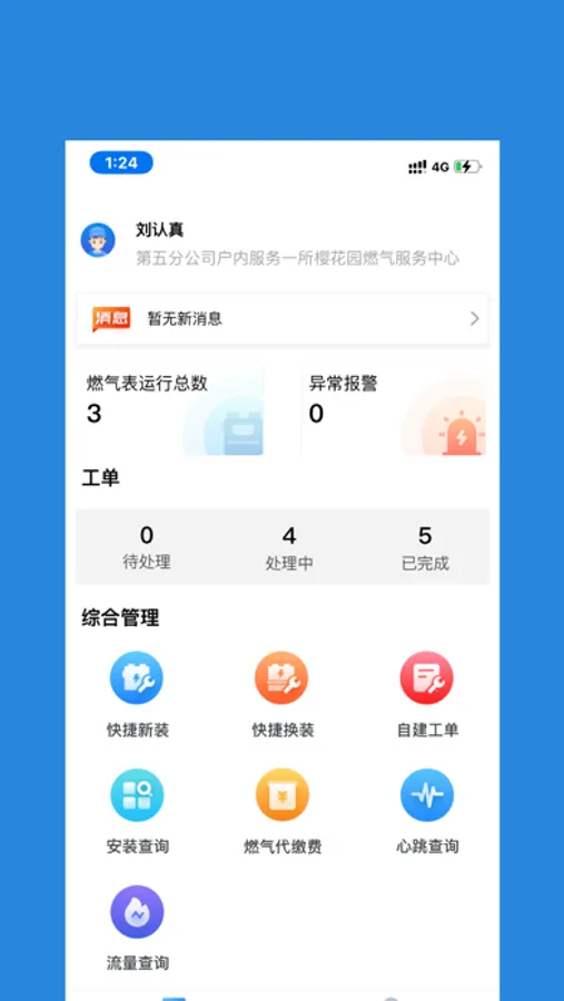 燃气行业工程管理应用,主要包含智能燃气表安装业务的流程处置及管控,燃气相关报修,维修业务的现场处理,燃气入户巡检业务的现场处置等功能操作。