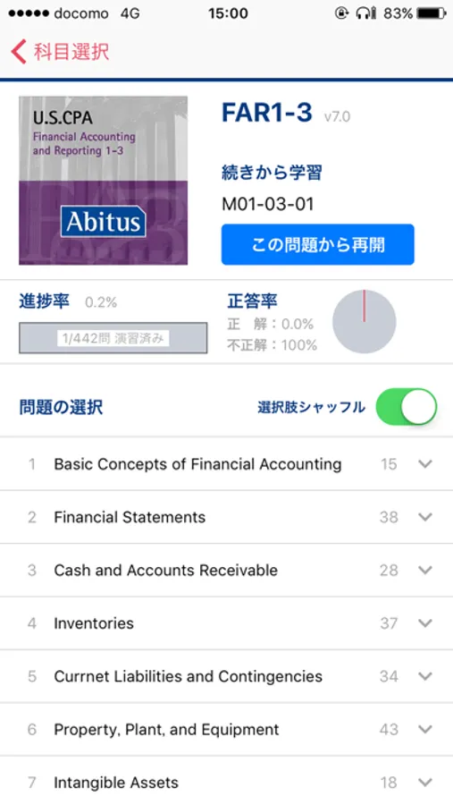 「選択肢シャッフル」機能を有効にすることで、新鮮な感覚で問題演習に取り組むことができます。