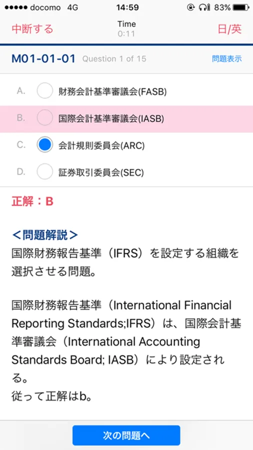 全ての問題について、日本語/英語 の表示切替が可能です。