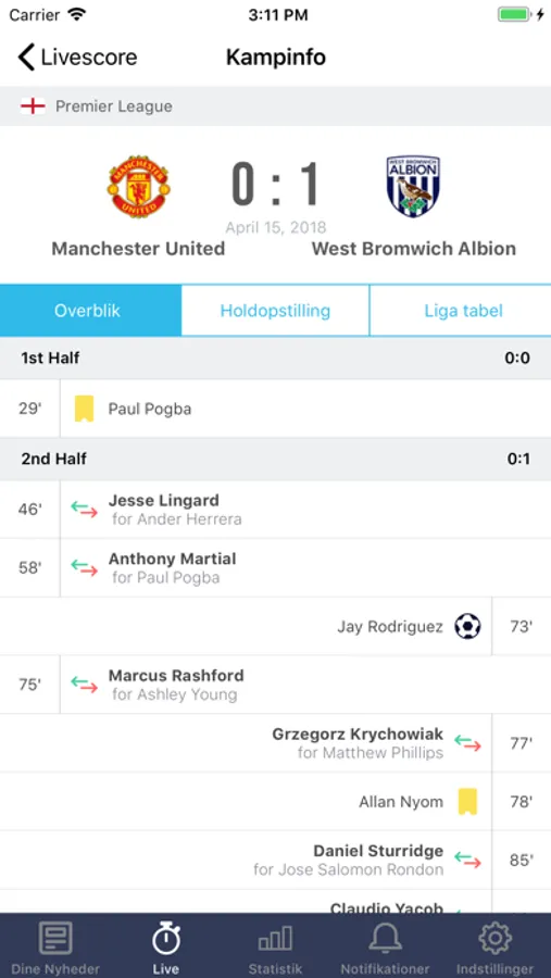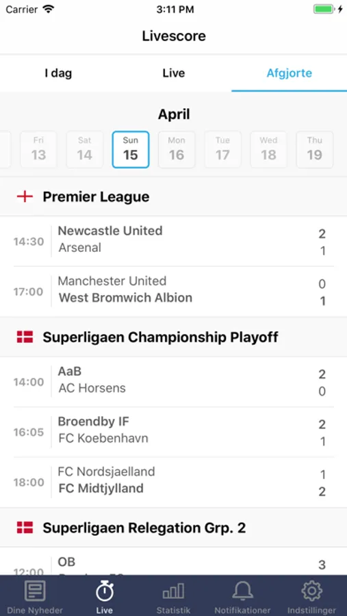 - Livescore fra Premier League - og mere end 200 af verdens ligaer
