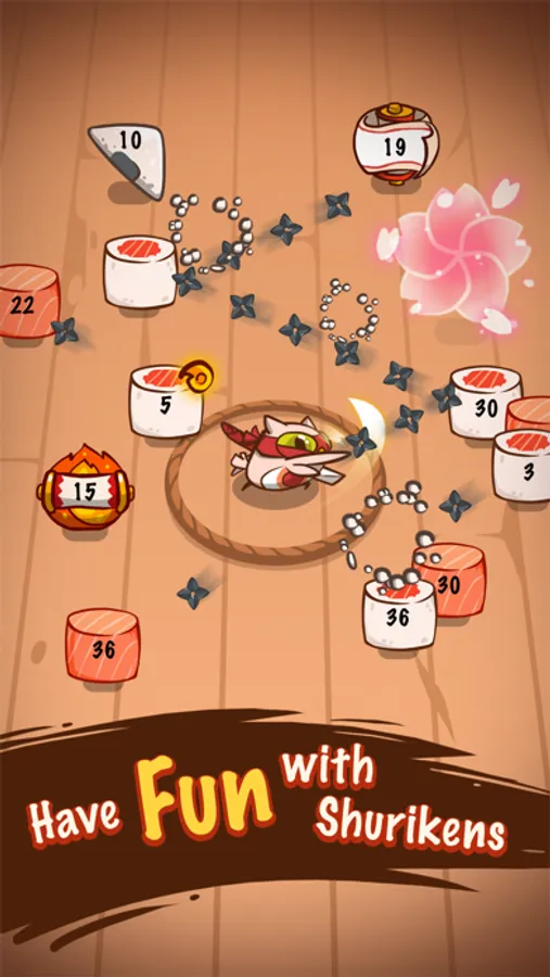 - Throw Shurikens to defend yourself from hordes of evil Sushi!