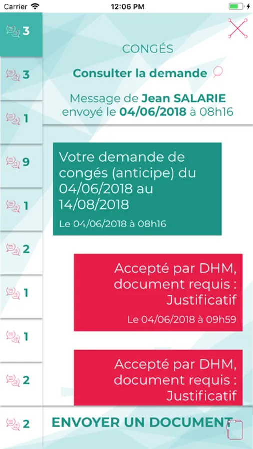 - Faire une demande en direct à l’employeur (congés, rendez-vous …)