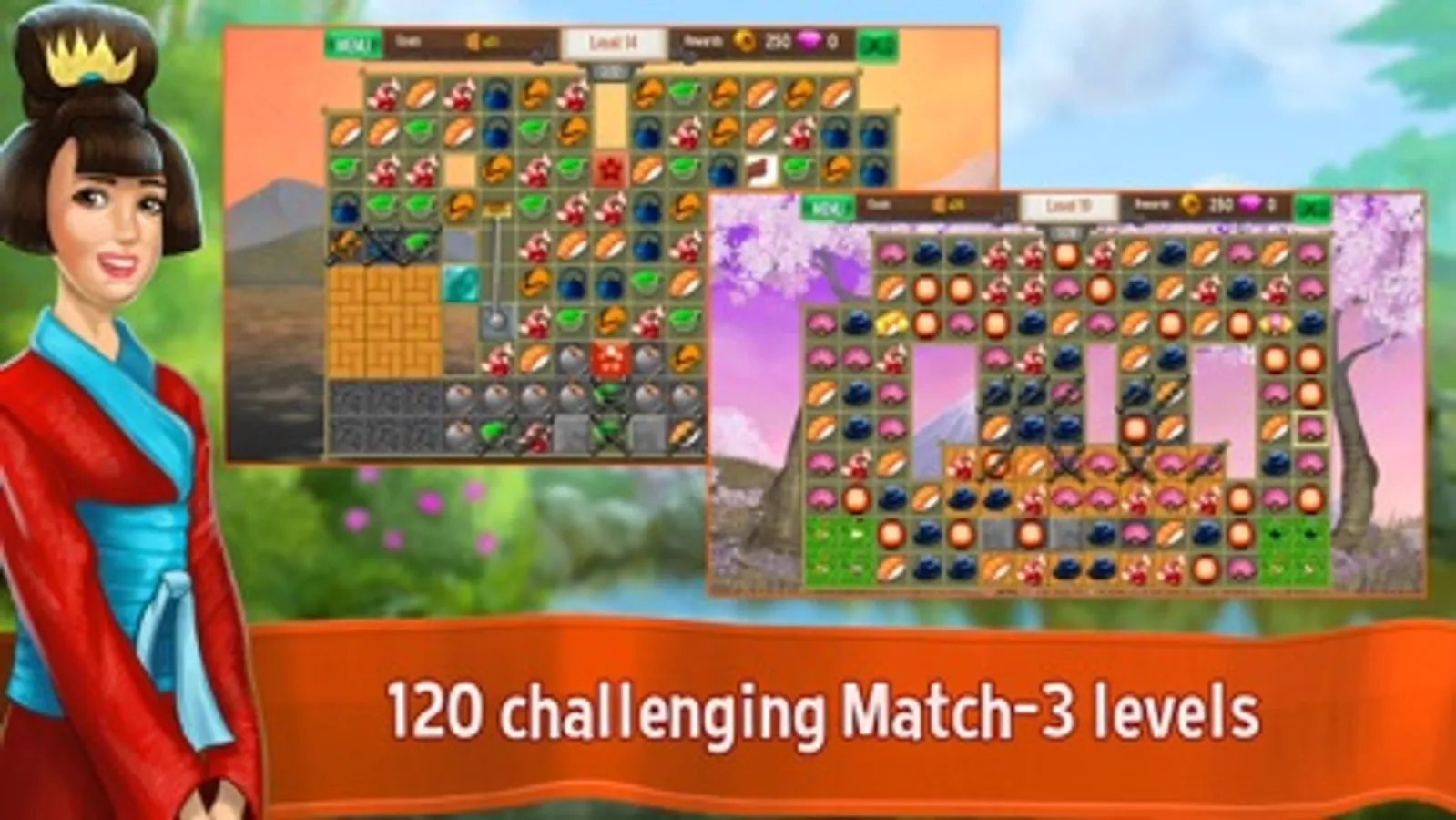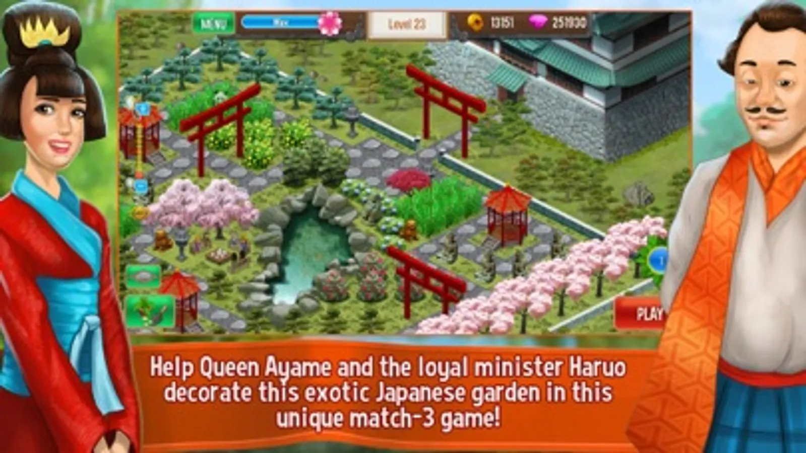 Help Queen Ayame and the loyal minister Haruo decorate this exotic Japanese garden in this unique match-3 game! Play over 119 levels, collect coins and special jewels, purchase plants and decorations to design the most beautiful garden in Japan!