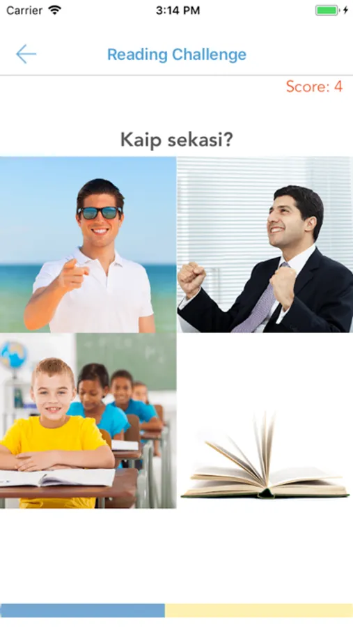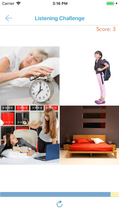 In each lesson you can collect points from reading and listening sections. Based on these points your overall progress will be updated in the front page progress bar and saved in the app. You can retake the challenges and points for each section will be reset and taken into calculation of the overall progress updated on the front page.