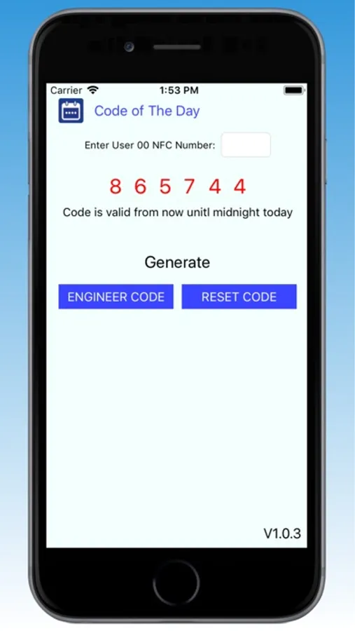 The Code of the Day app will generate engineer’s “Code of the Day” if that feature has been enabled on the control panel.