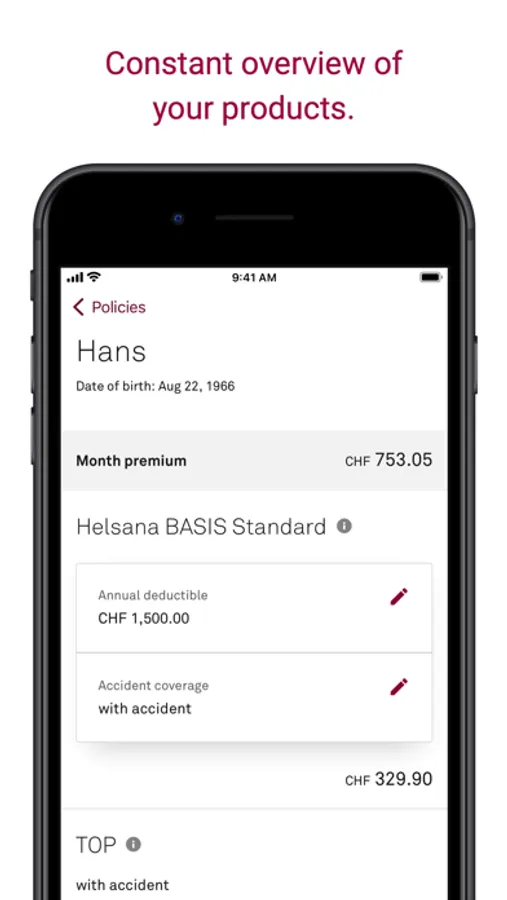 • Quickly done: Change your address, accident coverage or annual deductible yourself and manage your payment data instantly and easily.