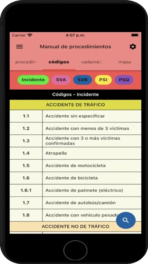 Aplicación no oficial del manual de procedimientos de SAMUR-PC.