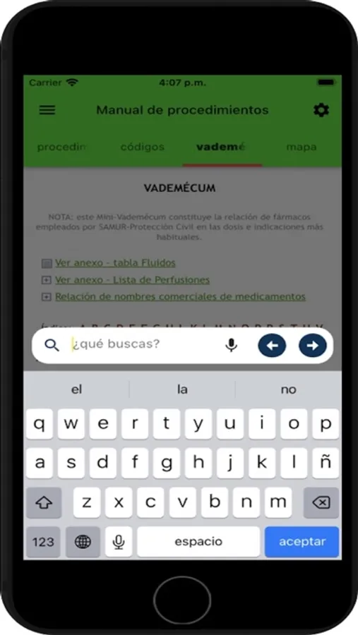 - consulta el vademécum utilizado en el servicio SAMUR-PC. Prueba a buscar un medicamento por su primera letra.