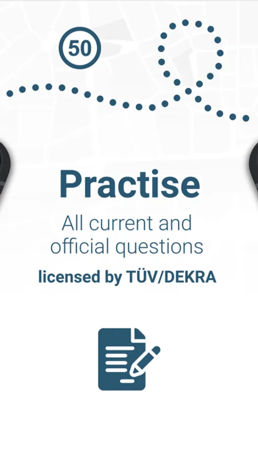 Our driving license app is the perfect preparation for your theoretical driving test. The app contains all official questions of the currently valid question catalog of TÜV | DEKRA.
