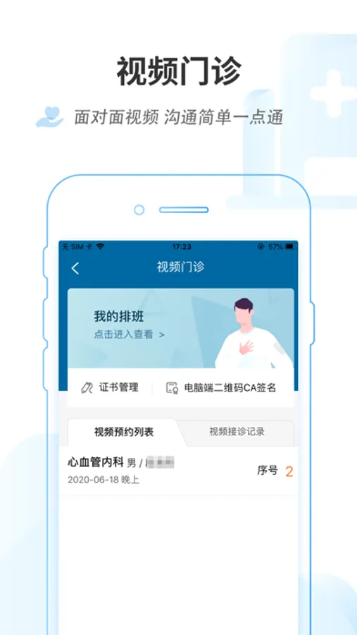 【个人中心】医护人员个人中心,可查看排班及接诊记录。