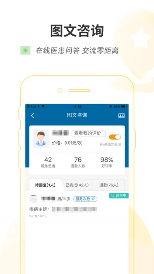 【图文咨询】提供院内医护人员在线图文诊疗需求,实时查看病患图文咨询。