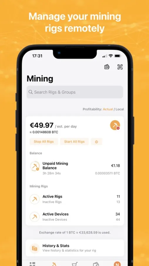 Manage and monitor your mining rigs remotely, keep an eye on temperatures, start and stop mining, and change power settings easily on the go.