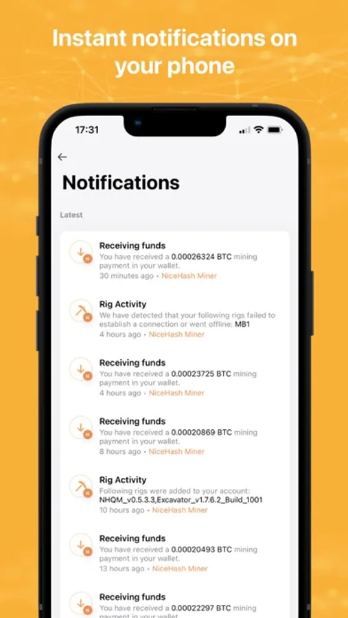 Enable push notifications and get instant information and updates about your NiceHash activities and important news on our platform.
